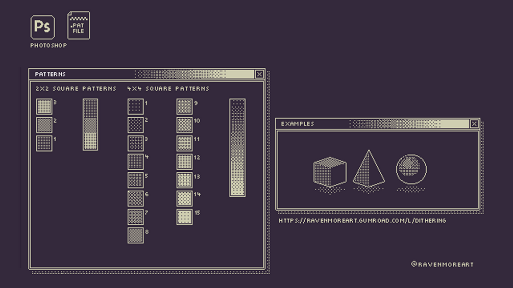 You'll get two .pat files, a total of 18 black-and-white dithering patterns.